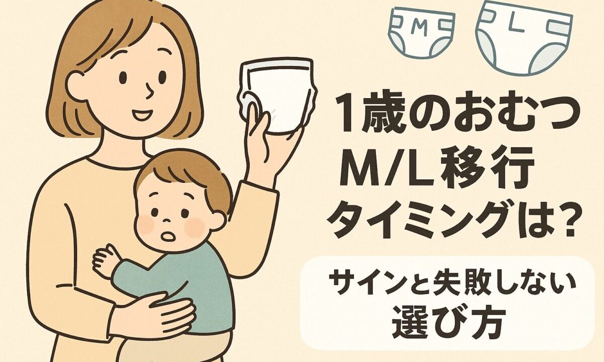 この記事では、1歳の子どもがいる我が家の実体験をもとに、おむつサイズアップの具体的なサインと、失敗しないLサイズ選びのポイントを整理しました。