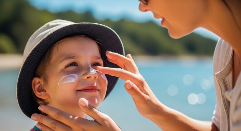 日本小児皮膚科学会でも、子どもの集団生活での紫外線対策として、帽子・衣類・日焼け止めの活用が案内されています。