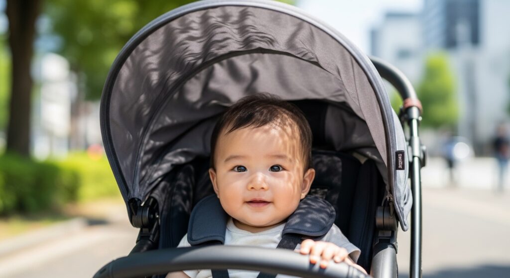乳児期は、まず直射日光を避ける工夫を優先すると考えるとわかりやすいです。環境省でも、乳幼児については紫外線の強い時間帯の外出を避けたり、衣類や帽子、日よけを活用したりすることが勧められています。